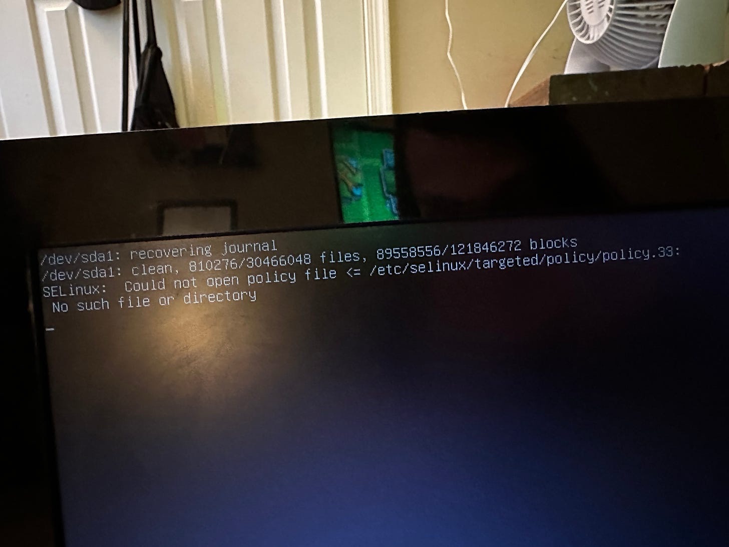 I decided to cancel it and try the update again, but when I tried restarting, I got this error: