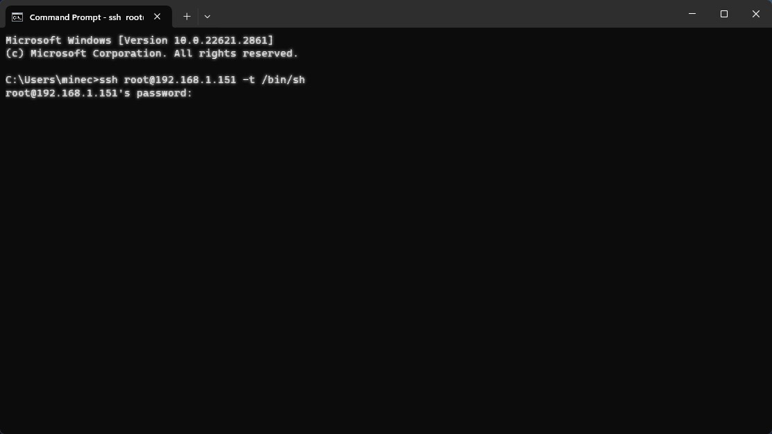 So I tried ssh….
