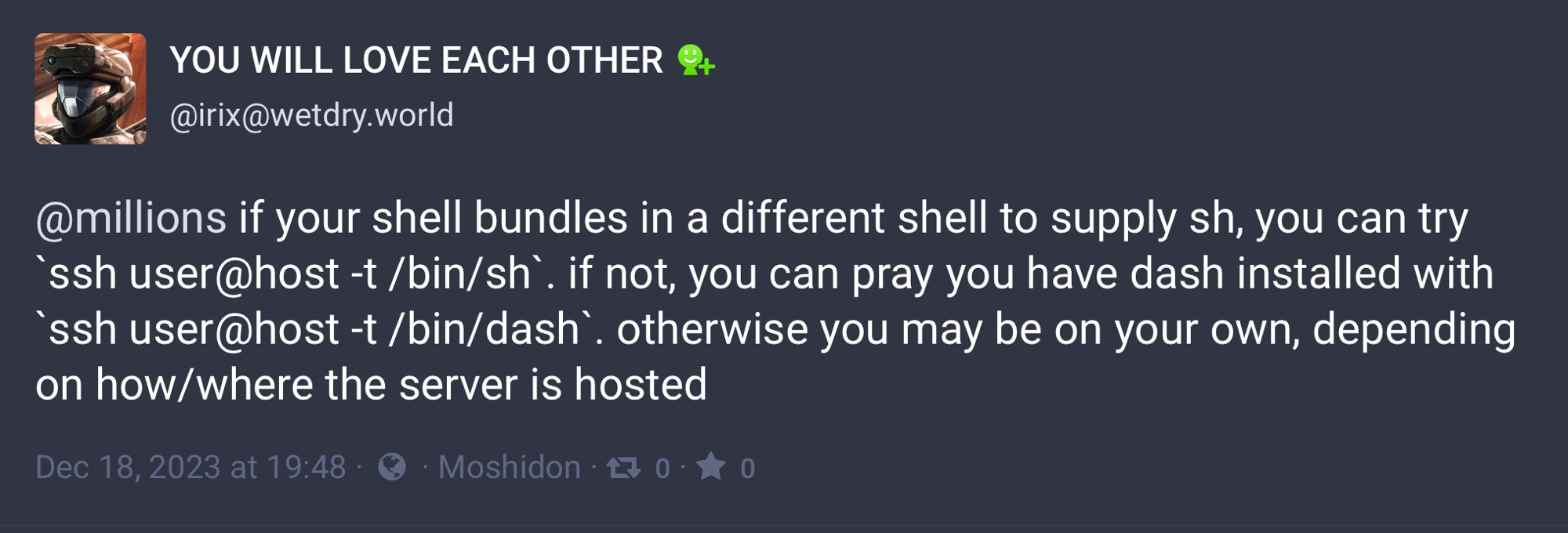 And when I tried it, nothing happened at first. I was confused. Then after about a minute, the text “/bin/bash: 491: :bin/sh: not found” flashed onto my screen, and then it showed Astro.